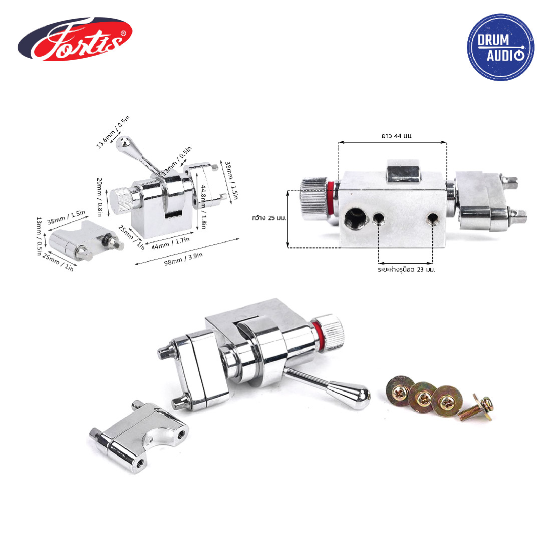 Tube Lug กลองชุด โครเมี่ยม ขาเตี้ย 23 mm. ระยะรูน๊อต 3.2 ซม.