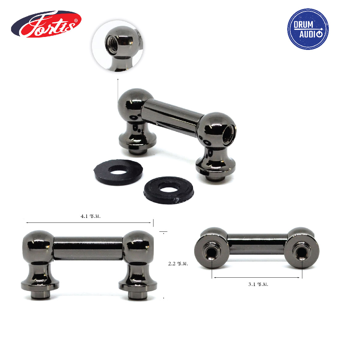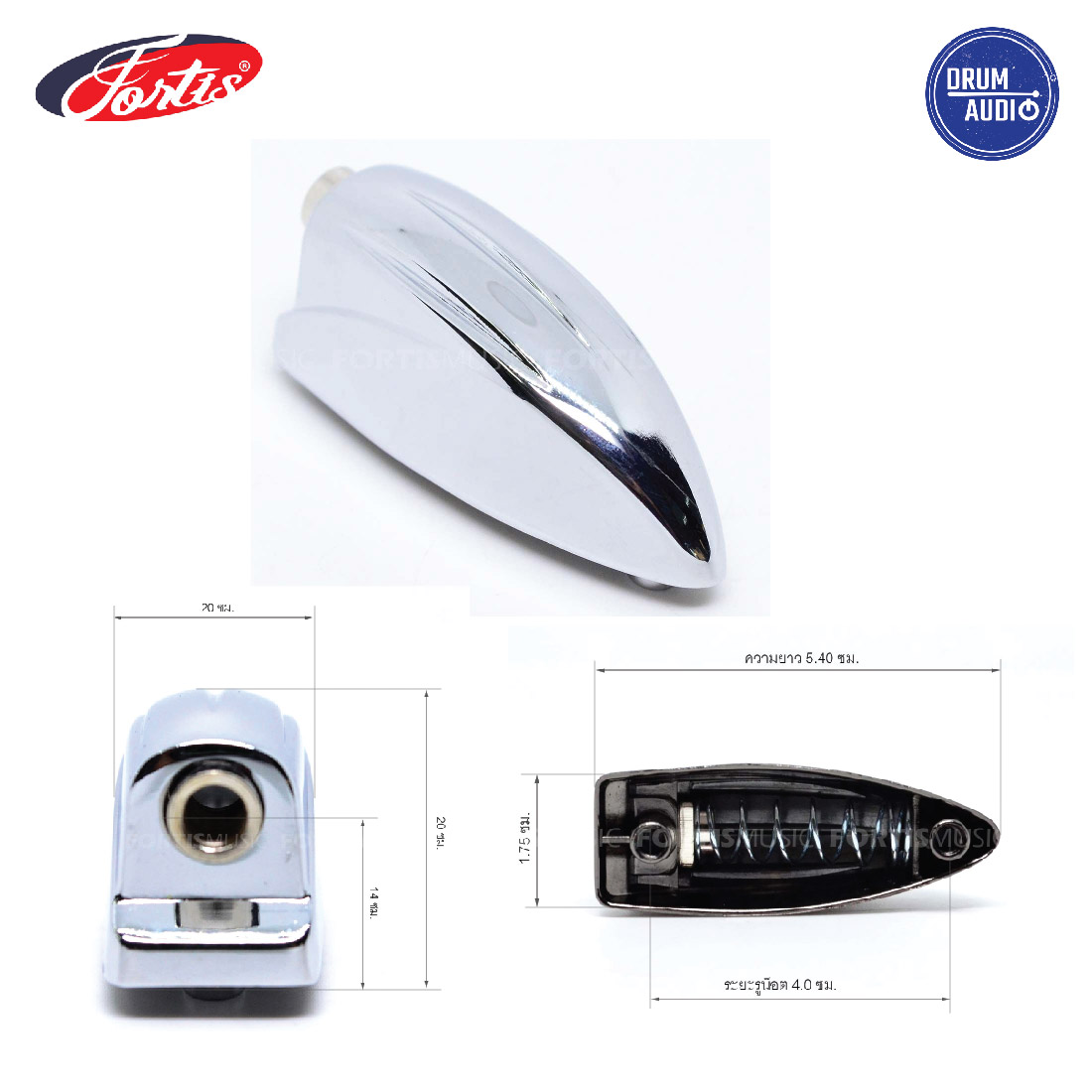 Tube Lug กลองชุด โครเมี่ยม ขาสูง 28 mm. ระยะรูน็อต 2.5 ซม.